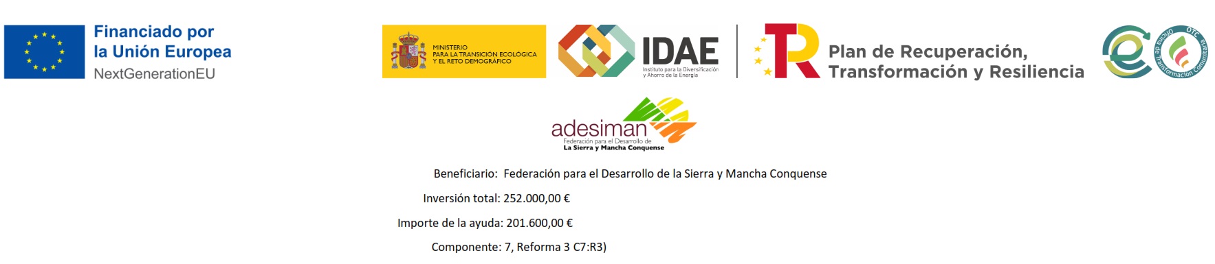 Esta iniciativa forma parte del Plan de Recuperación, Transformación y Resiliencia del Instituto para la Diversificación y Ahorro de la Energía (IDAE), y ha recibido fondos de los programas de recuperación Next Generation EU para su desarrollo.