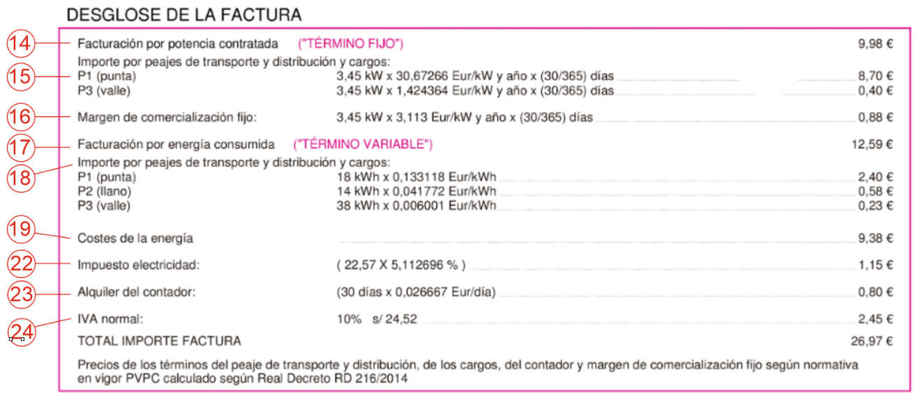 14.- Facturación por potencia contratada